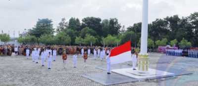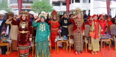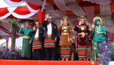Peringatan hari jadi tahun ini diawali dengan pawai devile seluruh Organisasi Perangkat Daerah (OPD) yang menampilkan beragam pakaian adat nusantara, mencerminkan semangat kebhinekaan, persatuan, dan kekayaan budaya bangsa yang hidup berdampingan di Bumi Serasan Seandanan.